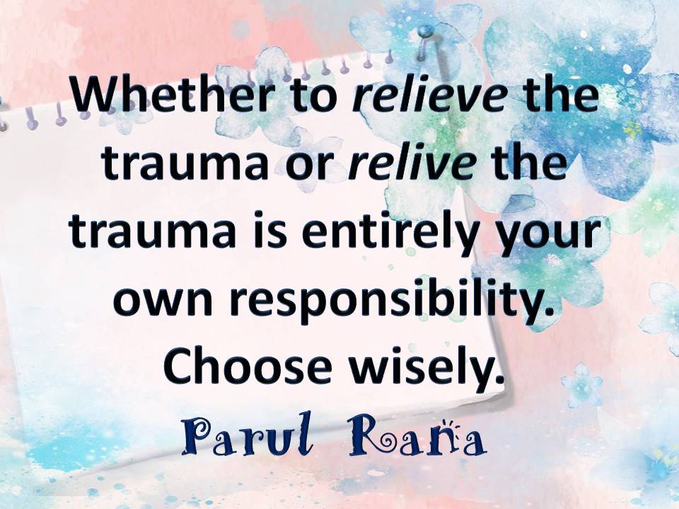 We all have endured some degree of trauma in our lives. Many people hold resentment towards someone in their lives. If they suffer childhood trauma, they hold resentment towards their parents or authority figure in their lives or if they have had a bad marriage, often people blame other people or complain about their spouse and not realise that everyone goes through certain degree of pain in their lives and one must make efforts to get out of the pain and take personal responsibility. Everyone tries their level best to be a good parent or be a good spouse but everyone has a limitation. When we complain, we forget the logic and our mind gets stuck in a cycle which can prevent us from reaching a resolution. We can use our time to come to a solution or to complain. The choice is always ours.